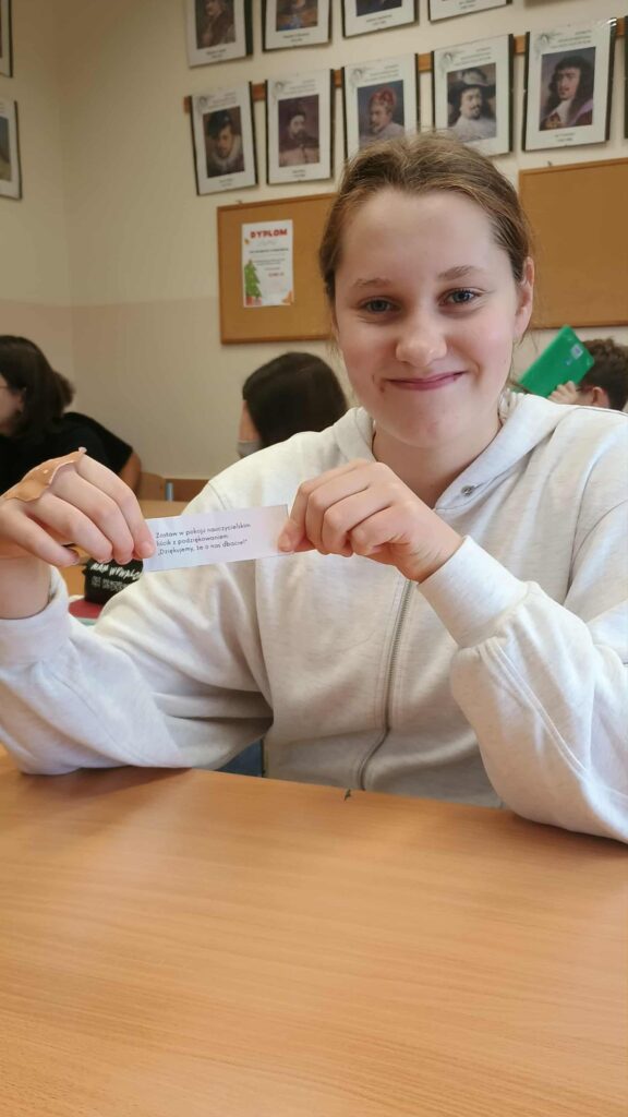 „Mural Pozytywnych Myśli” w klasie VII w ramach akcji Przeciwdziałania Przemocy Rówieśniczej w szkole.